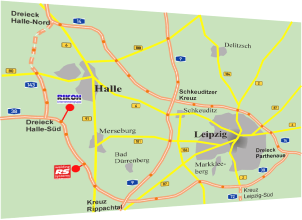 aus Richtung Berlin A9 oder Dresden A14 kommend ab Dreick Schkeuditzer Kreuz das Navi verwenden um Halle/S. zu überwinden